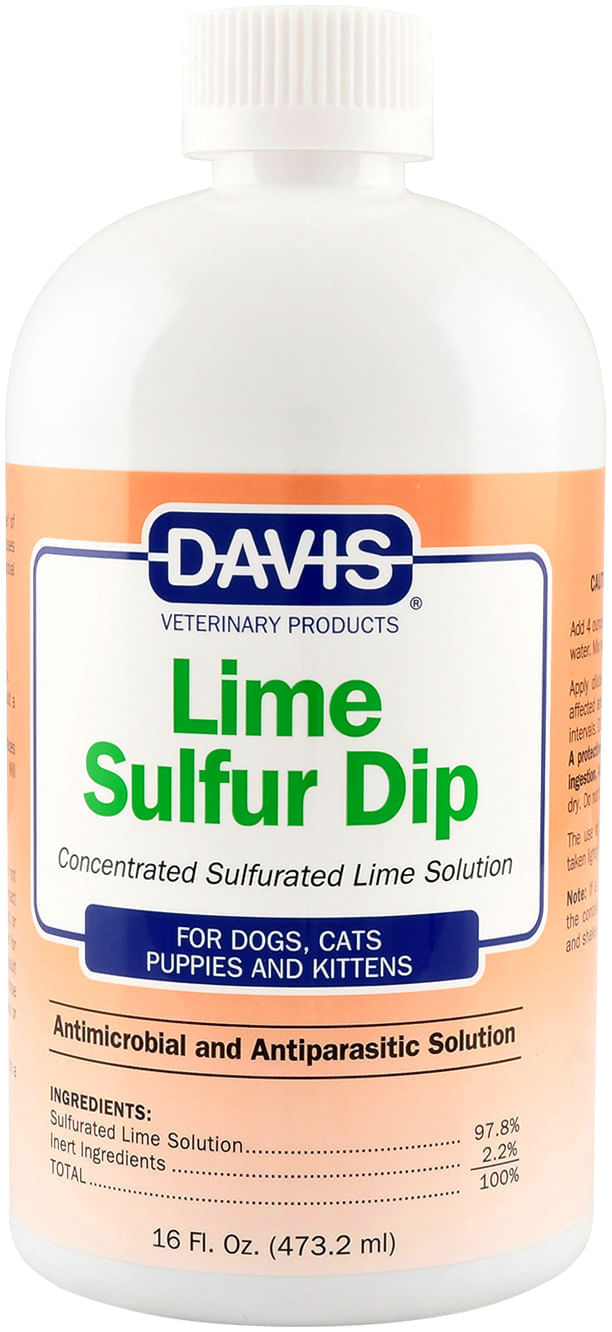 Many skin parasites are treated with the dip and it is the only effective. Lime dips require a prescription and the most commonly used dip is known as lymdyp concentrate. Add 4 ounces of davis lime sulfur dip to one gallon of water.